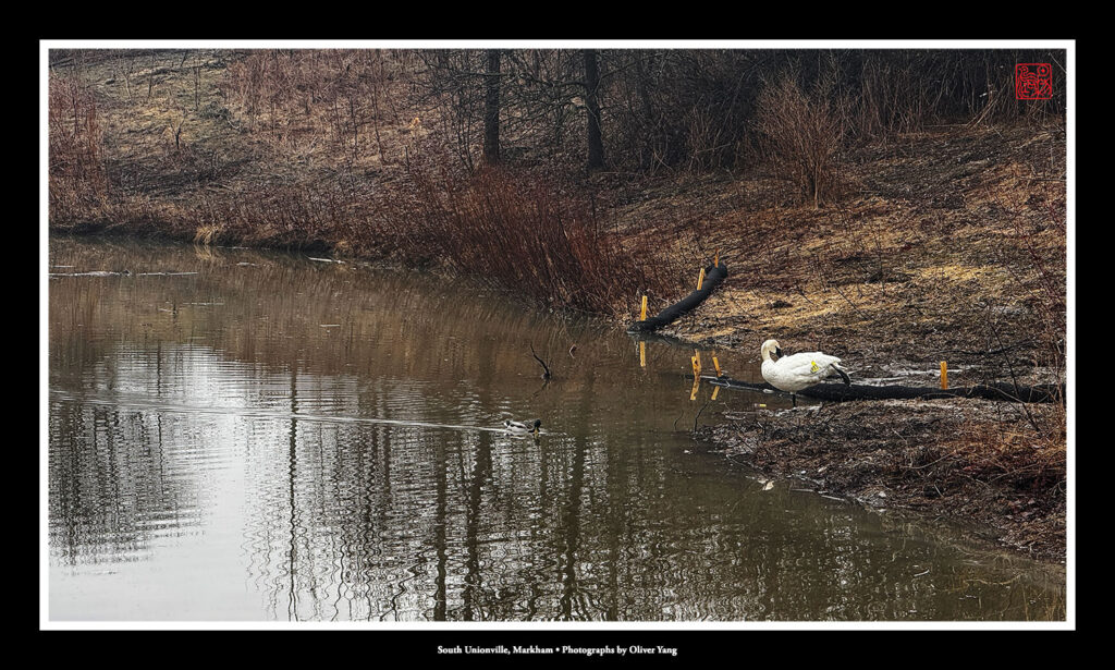 破曉驚雷三月盡,傾盆瀉霈仲春蘇。柳青鵝白橋東側,不落秋紅葉一隅。