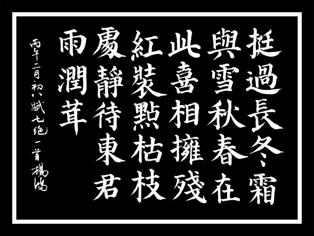 今日書法課習練本人所賦七絕一首: