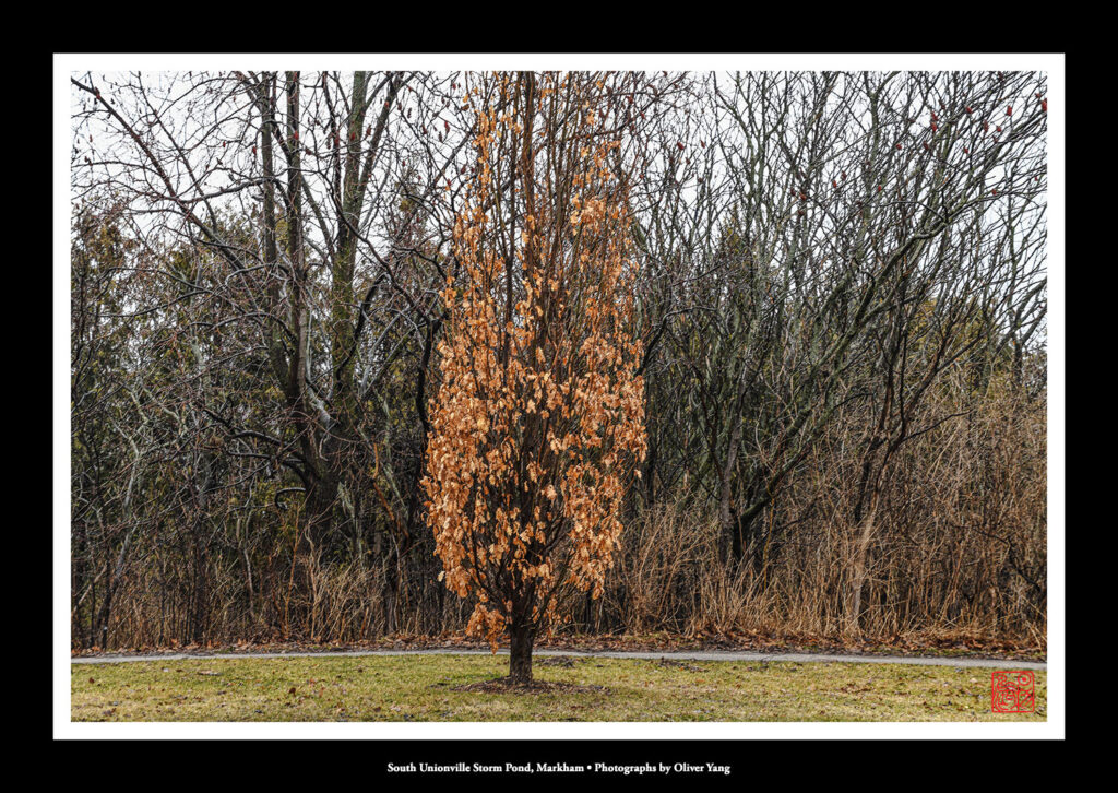 今日氣溫零上一度至九度。攝於我們居住小區,並賦七絕一首: