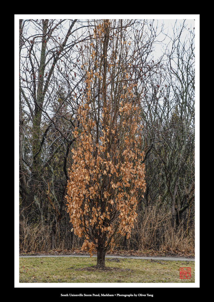 挺過長冬霜與雪,秋春在此喜相擁。殘紅裝點枯枝處,靜待東君雨潤茸。