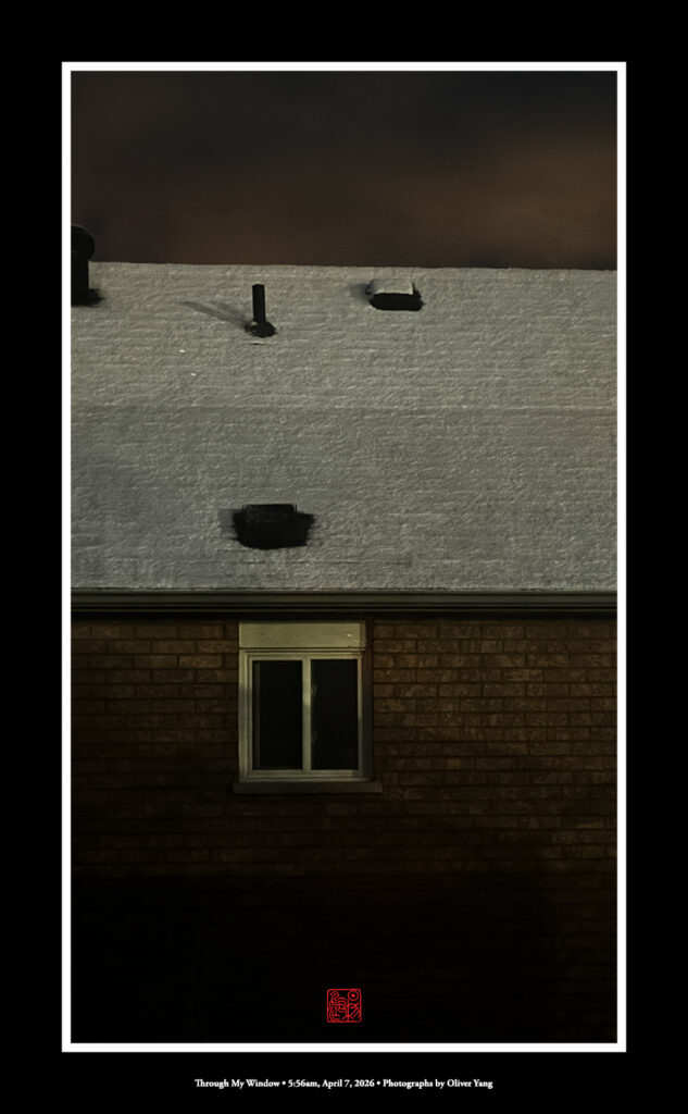 今日氣溫零下六度至零度,現體感溫度零下十三度!雪霽的清晨手機攝於我家窗前,並賦五絕一首: