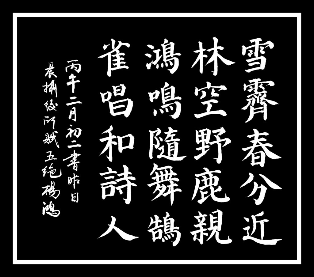 今日書法早課習練本人昨日晨攝後所賦五絕一首: