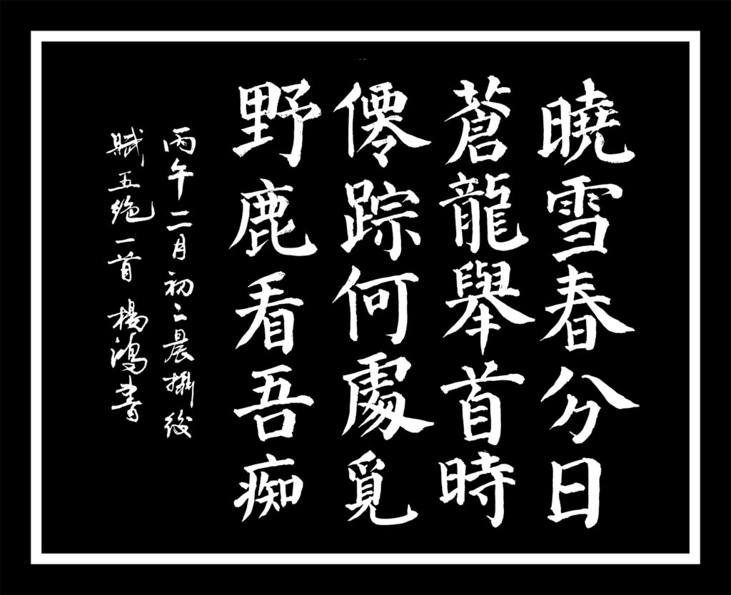 今日書法早課習練本人春分日晨攝後所賦五絕一首: