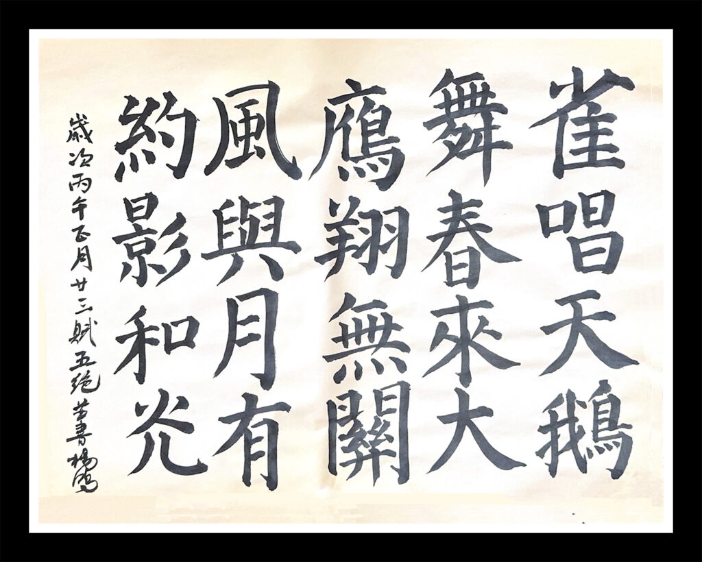 今日書法課習練本人所賦五絕一首來: