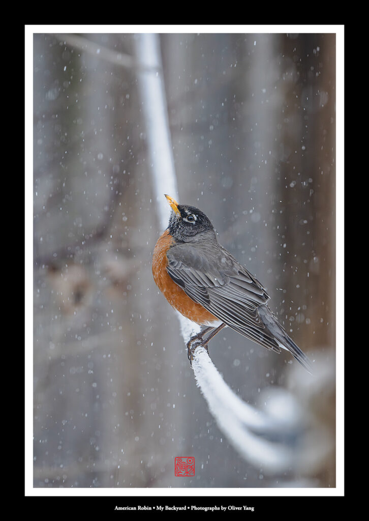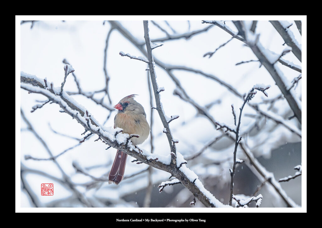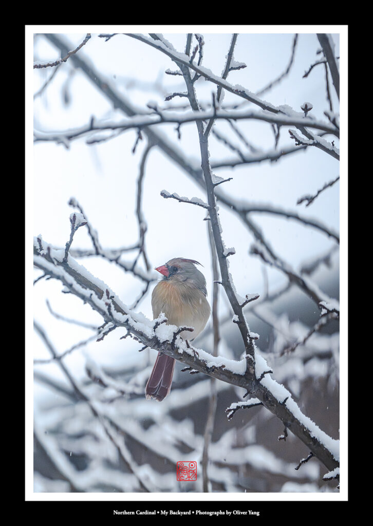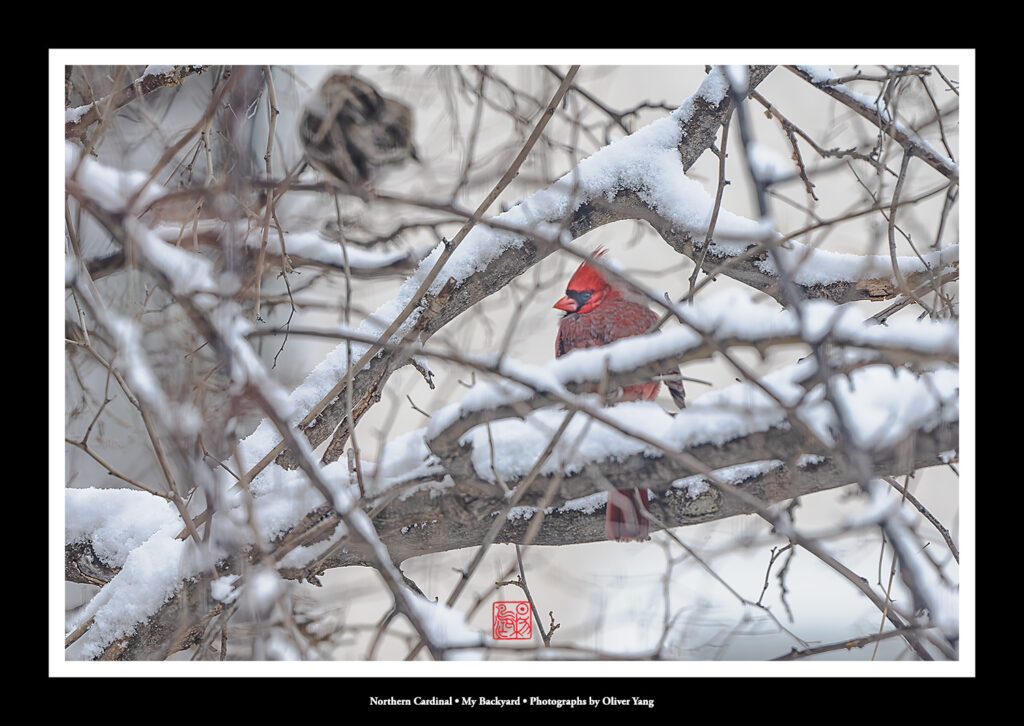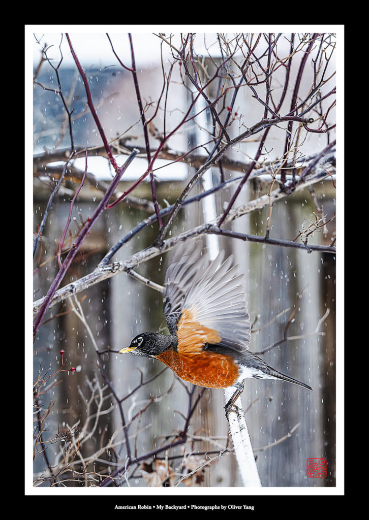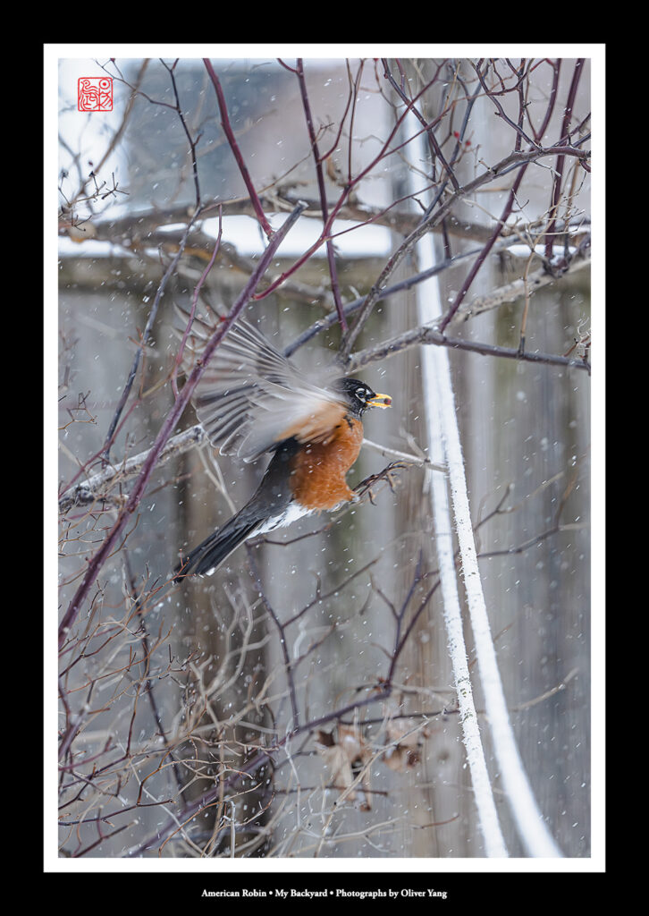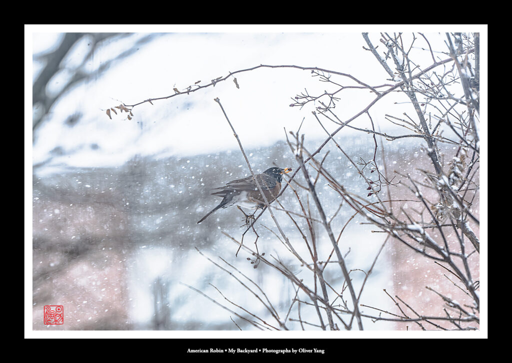 大雪纷扬际,幽园雀跃时。
