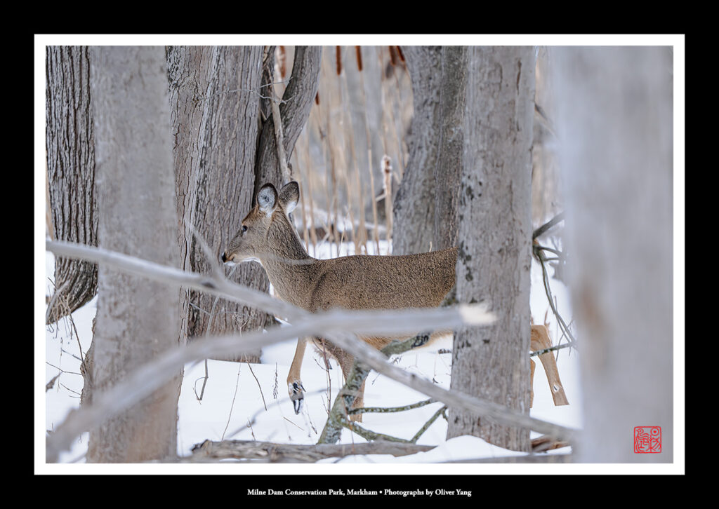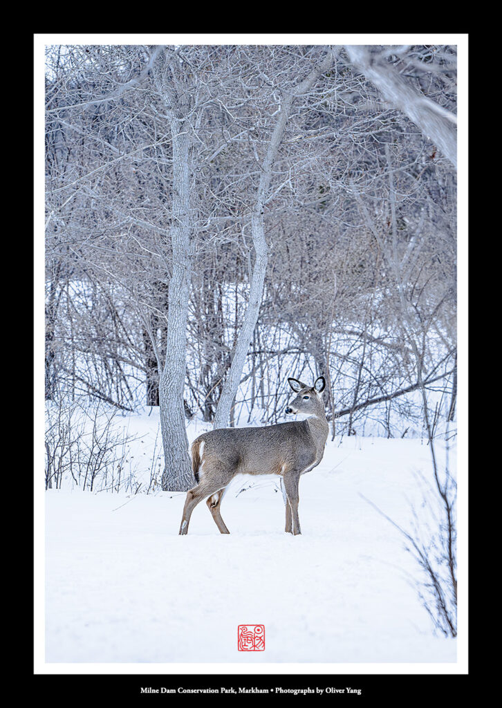 今日氣溫零下四度至零度。清晨攝於萬錦市Milne Dam Conservation Park,並填詞一闋南鄉子: