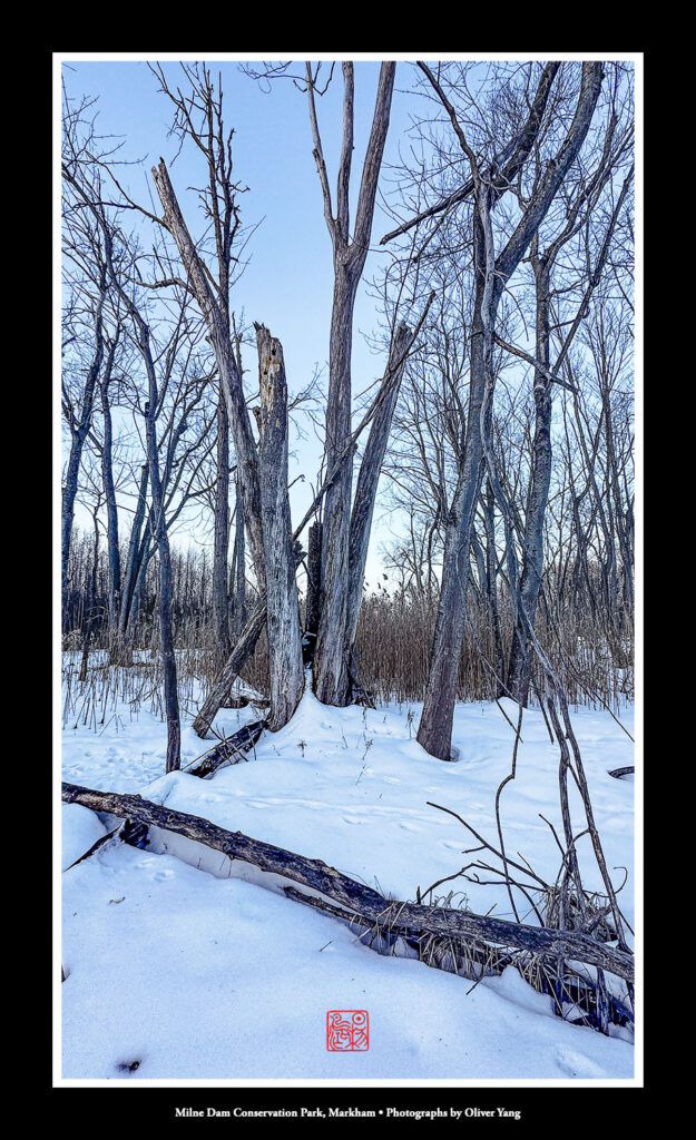 今日氣溫零下八度至零上五度。今晨攝於萬錦市Milne Dam Conservation Park,並填詞一闋南鄉子: