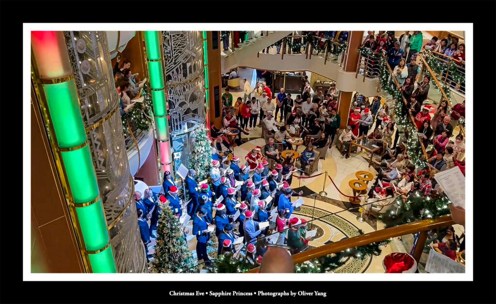 是夜,大家聚集在郵輪中心大堂,合唱平安夜歌曲,共慶聖誕。