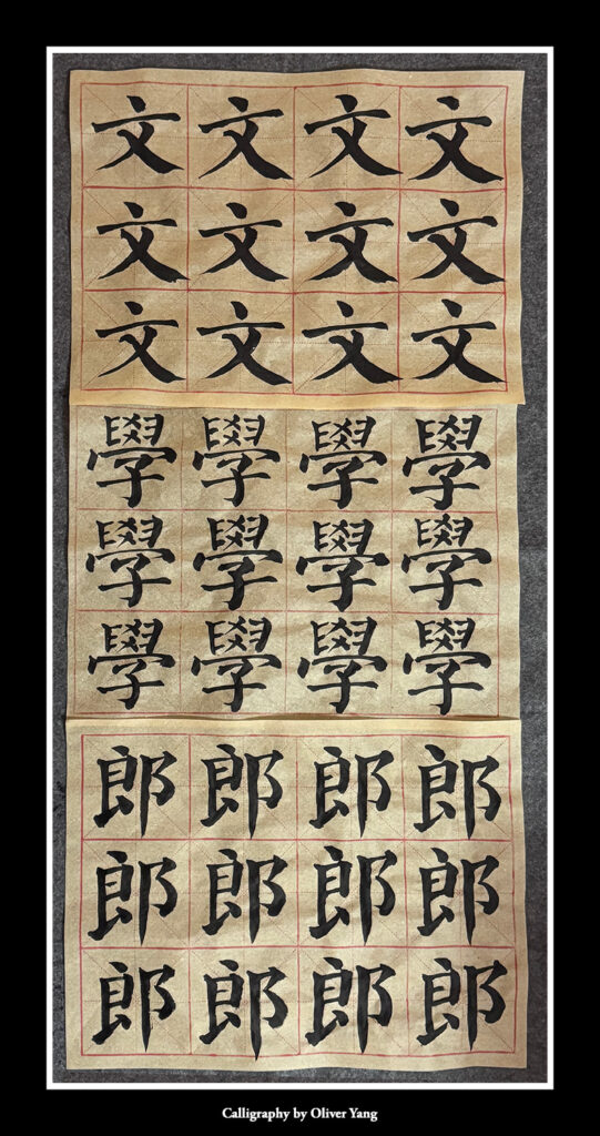 今晨書法早課,專注習練「文學郎」三字,並填詞一闋搗練子: