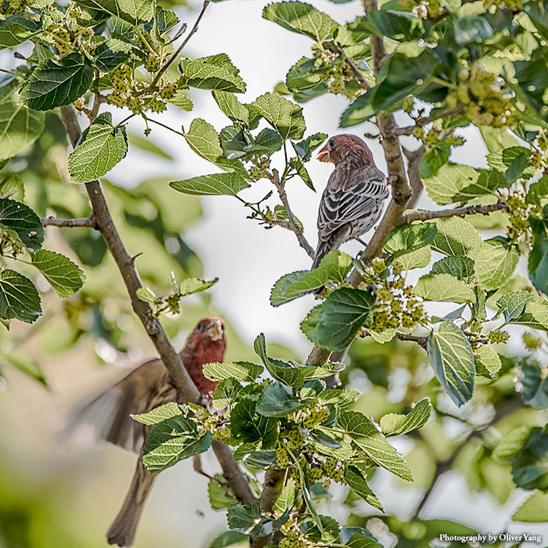 2016年攝於Backyard。三年前,後院牆角長出一棵樹,長得很快。開花後結出很多小果實。鳥兒特別喜歡這些小果子。小小一顆樹,果實食之不盡,整個夏天后院鳥兒便絡繹不絕。真是天賜一顆招鳥樹!