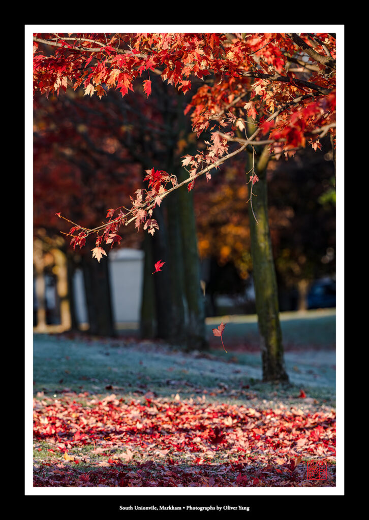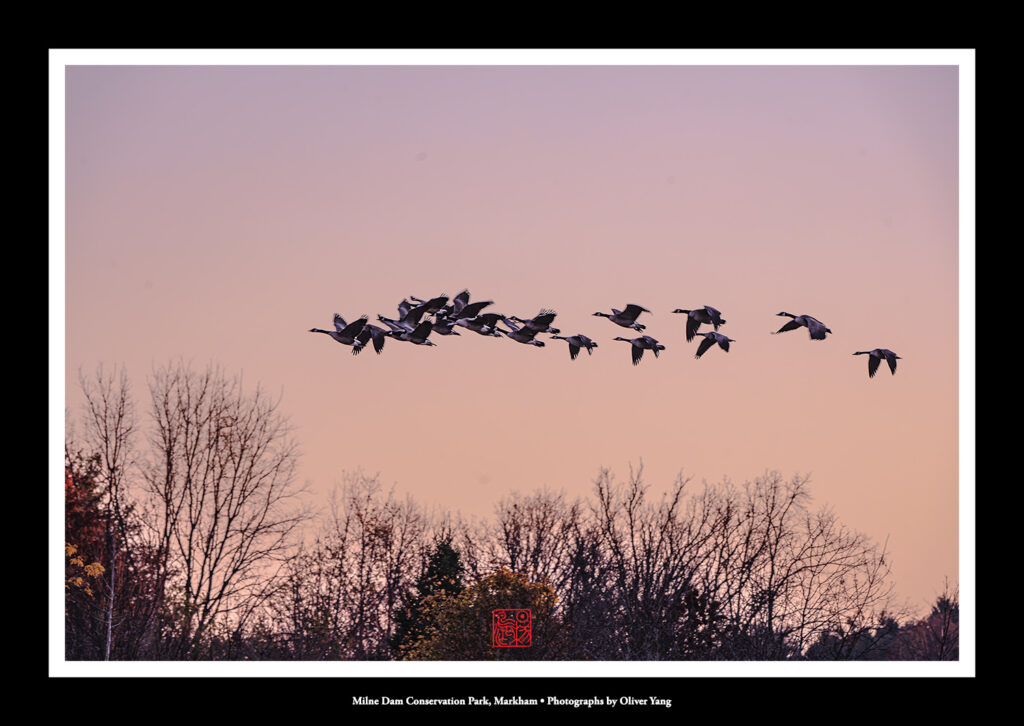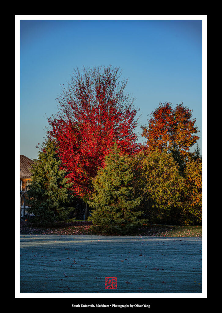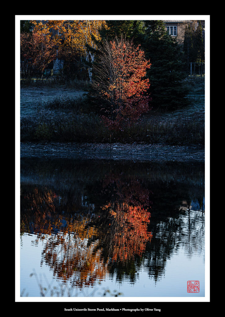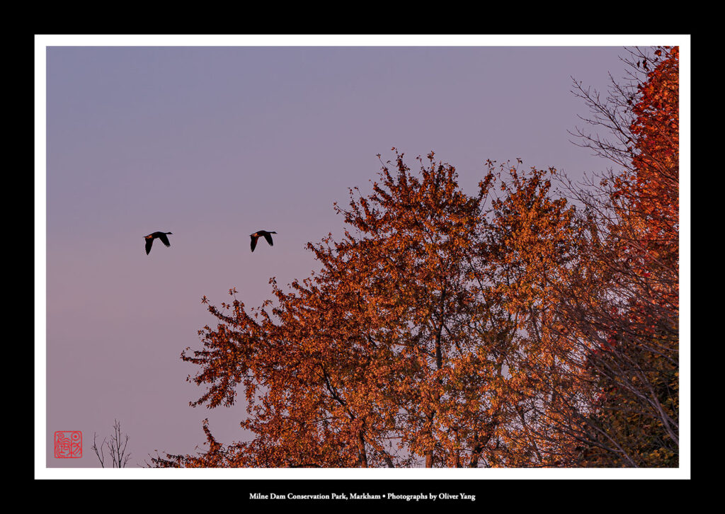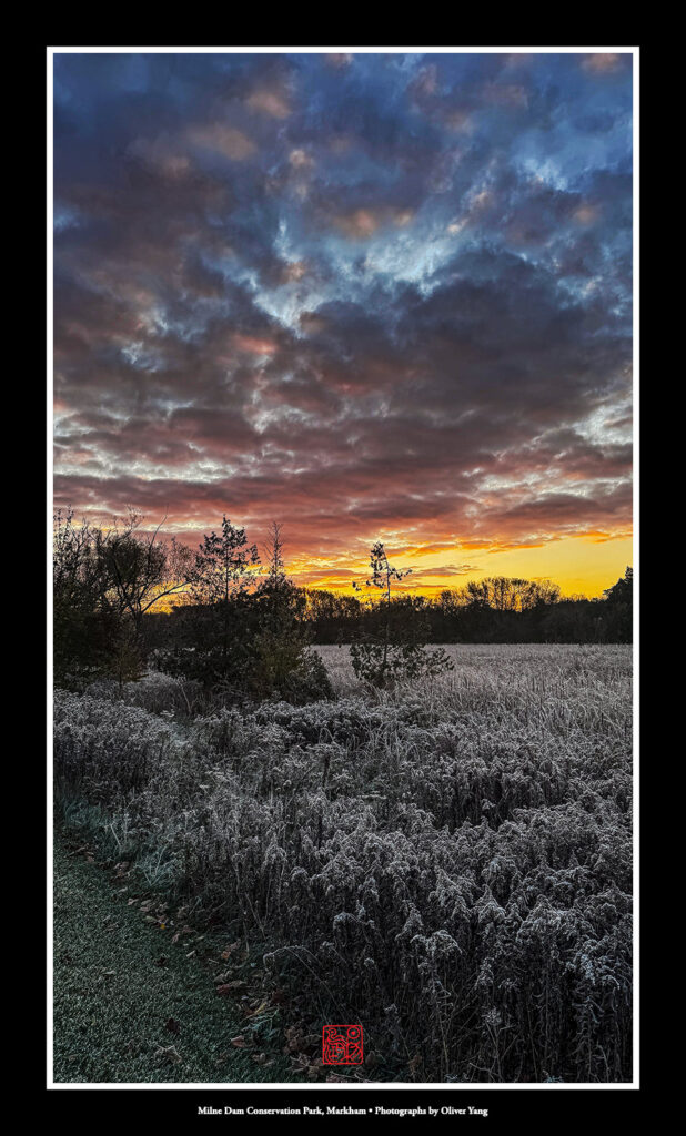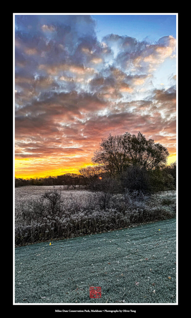 今天氣溫零下三度至十度。今天是冬令時的第一天。晨早攝於萬錦市Milne Dam Conservation Park和我們居住小區,並填詞一闋采桑子: